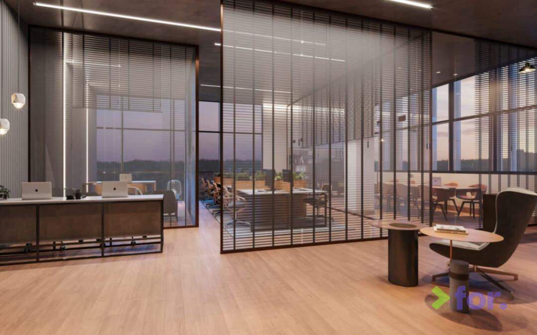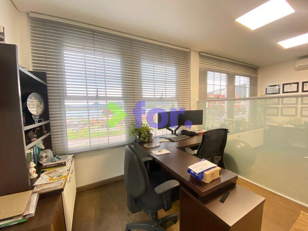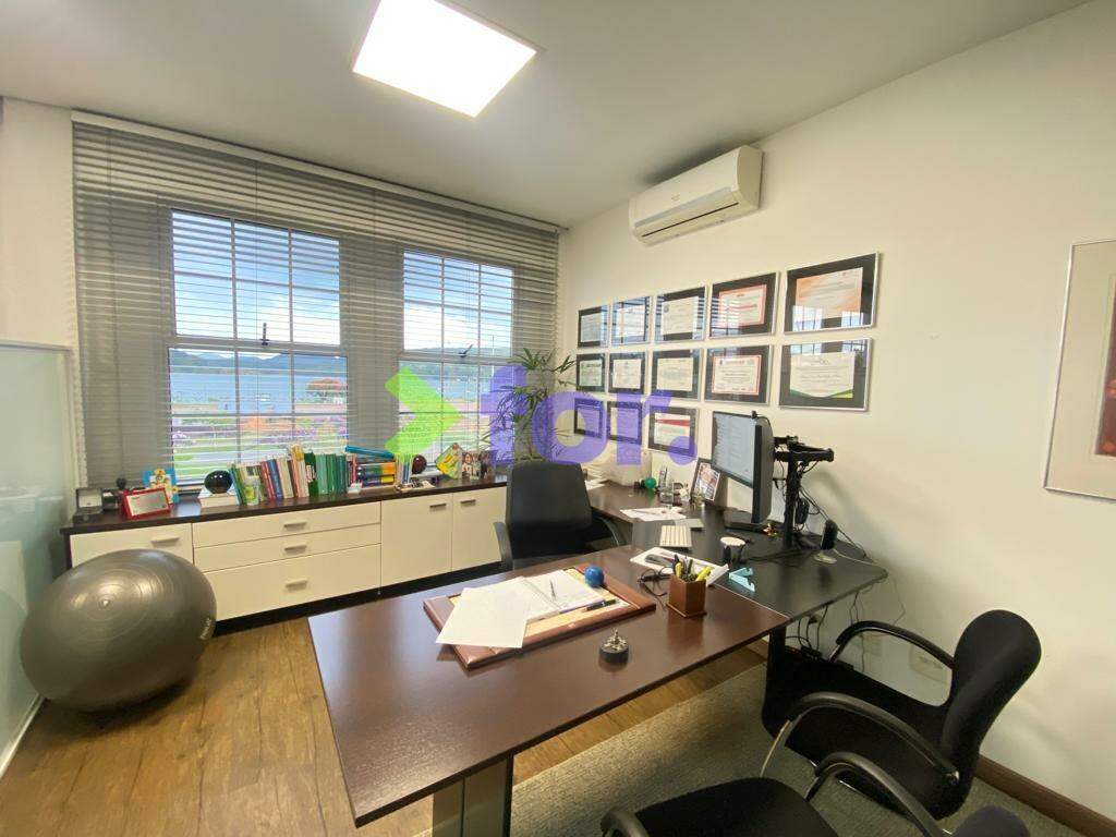 Entrando no imóvel nos deparamos com uma recepção com acabamento em madeira, lavabo de apoio, indo para o próximo ambiente temos a copa, banheiro, duas salas, sendo uma sala de reunião com painel em madeira e divisória em vidro. passando a frente temos mais uma sala de reunião com painel de madeira e mais um ambiente com 3 espaços de escritório mais um banheiro. Todas as salas contam com uma linda vista para a Lagoa dos Ingleses.