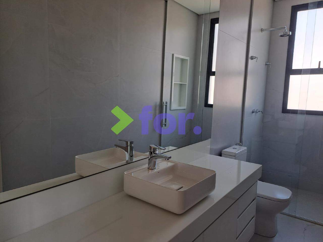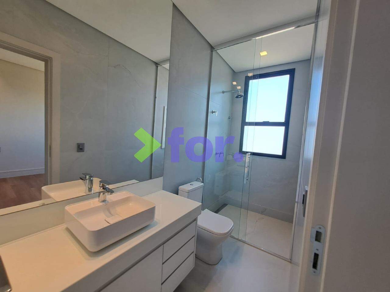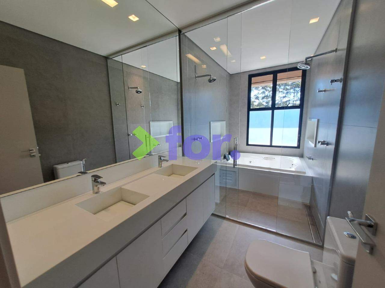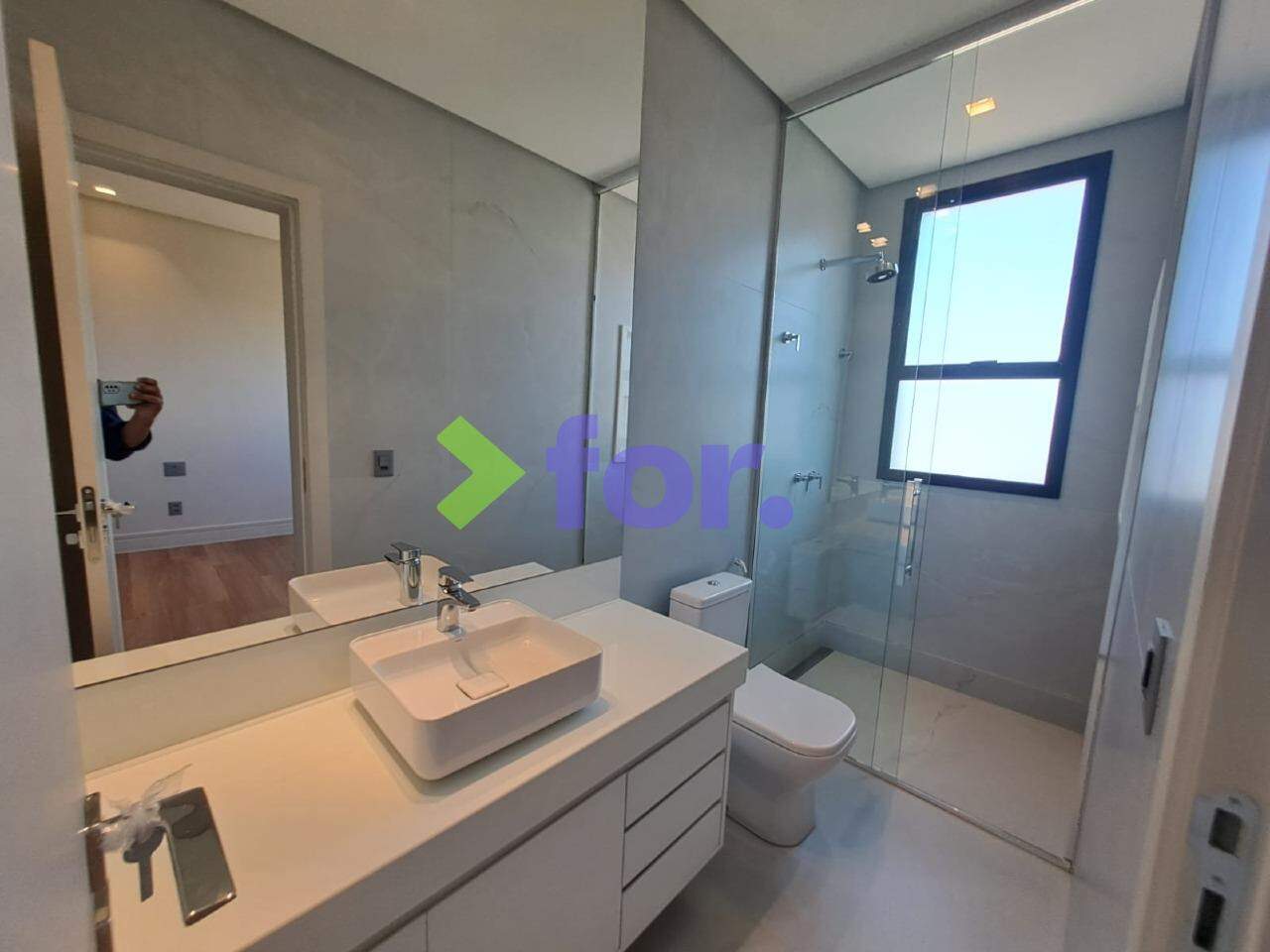Sala com pé-direito duplo, vista definitiva para a lagoa, suíte máster com closet, suíte com deck privativo, cortinas automatizadas e integração dos ambientes sociais com o espaço gourmet e a piscina. Aceita pets.