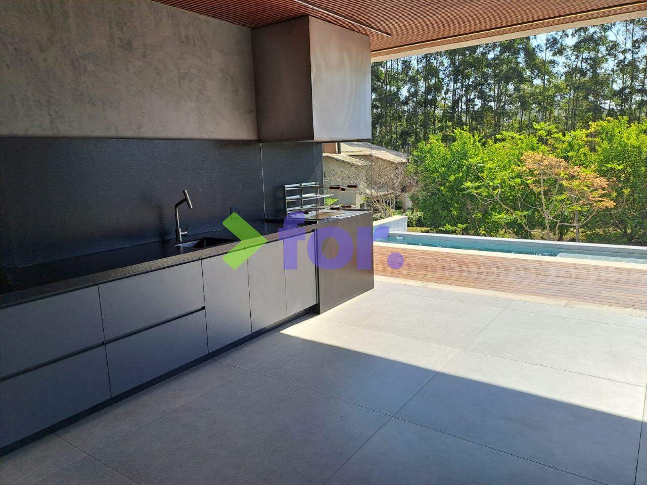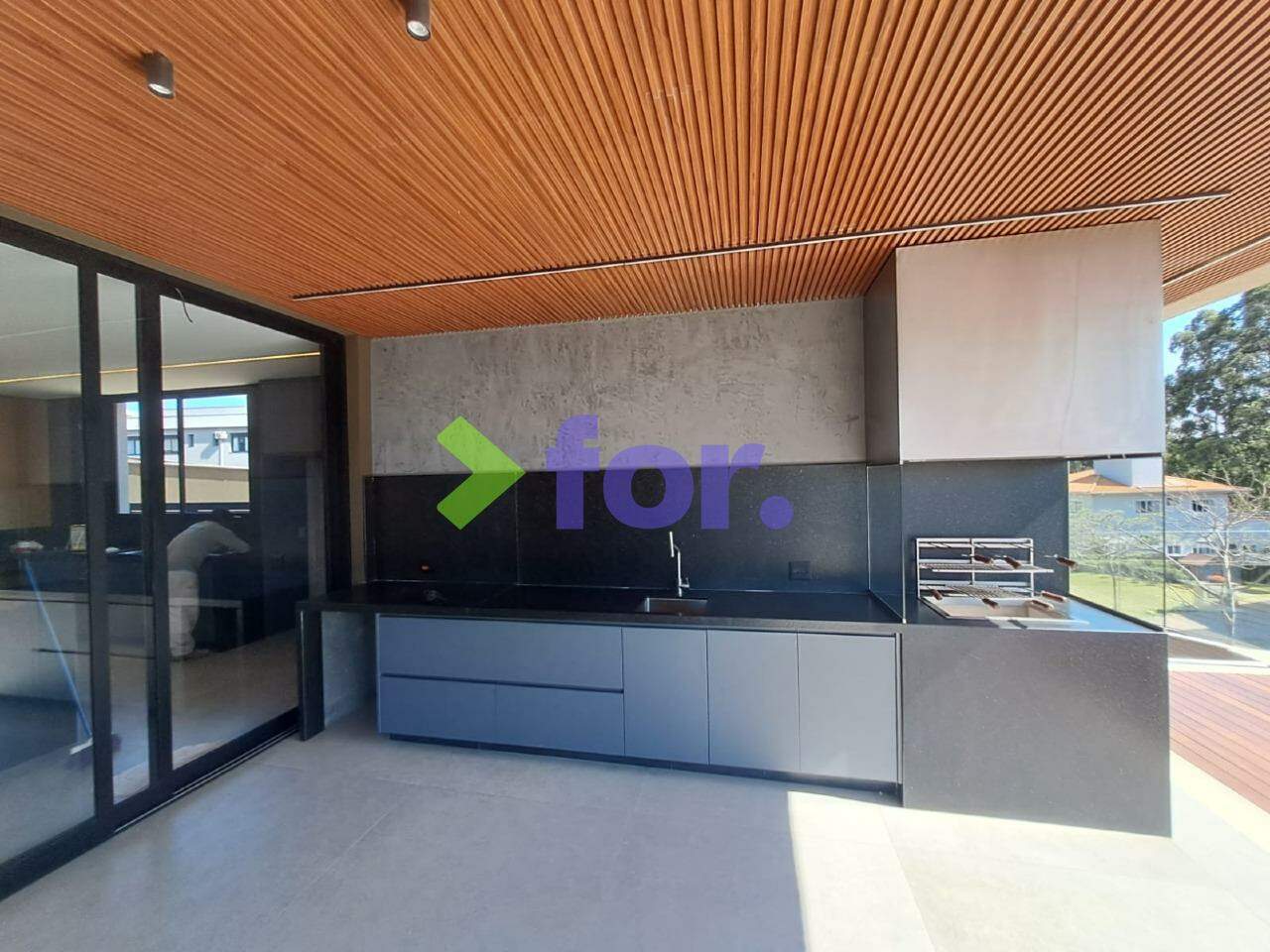 Sala com pé-direito duplo e vista para a lagoa. Sala conjugada com a cozinha. Espaço gourmet integrado e piscina com vista para a lagoa. Lavabo. Escadas em mármore. Área de serviço completa.