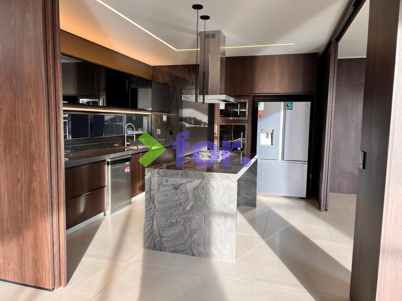 Ambientes integrados com cozinha, sala de estar e jantar, e espaço gourmet. Varanda com vista para a montanha e para a lagoa. Lavabo, despensa, dependência completa de empregada e área de serviço.